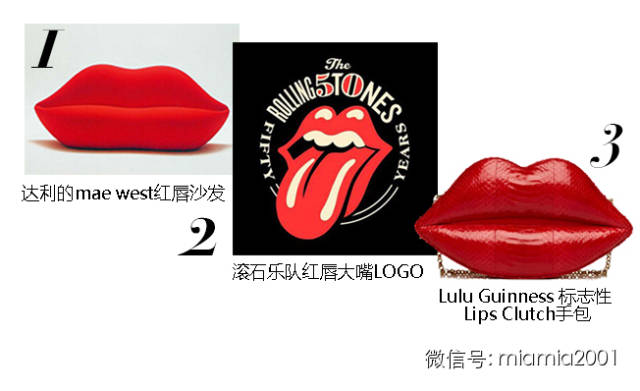 以红唇为元素的设计一直层出不穷,无论是西班牙艺术家SalvadorDalí设计的梅维斯唇形沙发,还是滚石乐队(The Rolling Stones)那个吐着红舌头的红唇大嘴形象,及Lulu Guinness设计的红唇手包(Lips Clutch)。红唇,已经成为设计师们钟爱的经典。