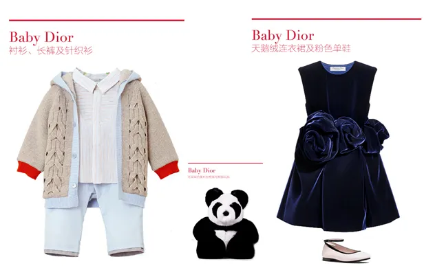 白天,用剪裁精巧且质感柔嫩的Baby Dior将你的孩子们打扮成新年派对里的小王子和小公主。入夜,软软的熊猫玩具伴着宝贝们在梦中的童话国度里迎接新的一年。
